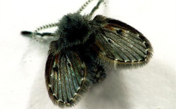 2、成虫体长1.5-5毫米,呈灰黑色,具6足,其全身长满细毛,翅端尖锐,触角长,一般有12-16节。